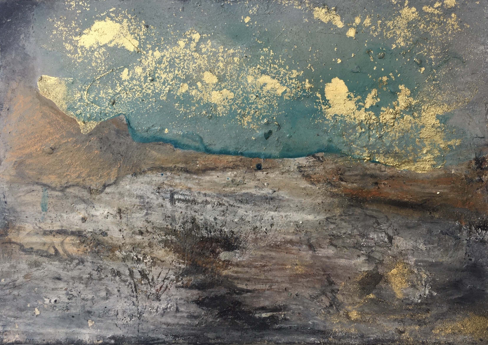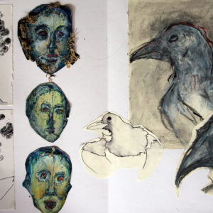 Format des livres : 25 X 35 cm, Format des peintures : 35 X 50 cm/ Le texte est imprimé sur transparent (rhodoïd). Au dos des peintures, collages de pages jaunies (de livres anciens), de bois et papier réfléchissant. Couverture en croûte de cuir, vert ou noir selon les exemplaires. Livre réalisé en 2014.