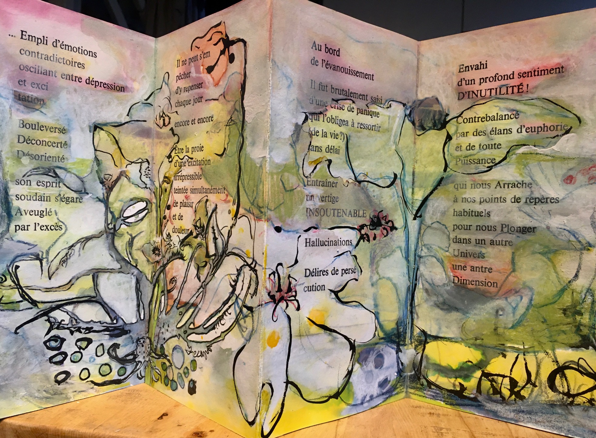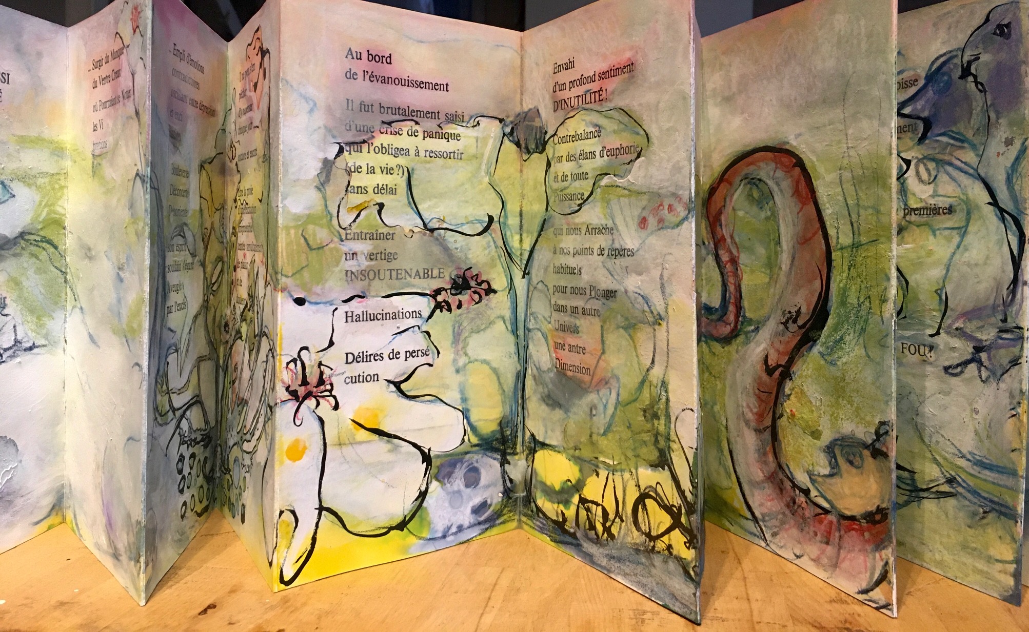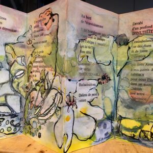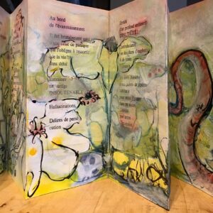 Livre d’artiste interactif où le sonore mêle étroitement la matière des mots au mouvement du geste peint